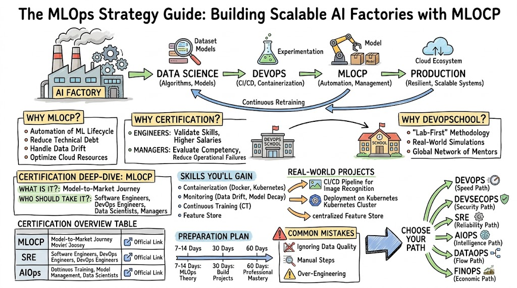Selecting a training partner is as important as the certification itself. DevOpsSchool is a standout choice due to its “Lab-First” methodology. Their curriculum avoids empty theory in favor of deep, real-world simulations. With access to a global network of mentors and a syllabus that is updated in real-time to match industry shifts, DevOpsSchool provides the perfect environment for working professionals to gain rigorous, hands-on mastery of the MLOps domain.